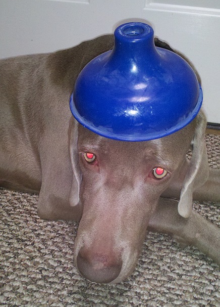 Yes, it is the day you have all been waiting for - National Wear A Plunger On Your Head Day! Don't worry, Pretzel is wearing a new clean plunger! He isn't thrilled about the hole deal, but then that's his resigned expression (he is used to me doing weird things to him to make funny pictures).
