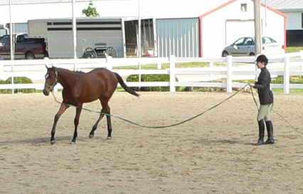 After the halter portion, we walked to the rail and prepared for the longe part of the class. I used up half a can of fly spray just standing there. the temperature hovered near 100 degrees and the biting flies were out in full force! The waiting was the worst part of the class.