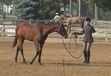 Corky is 16 months old now! We have experienced 3 futurity longe line classes. Corky is now starting to understand the show life...new places, new stalls, strange horses, and lots of people looking at her.