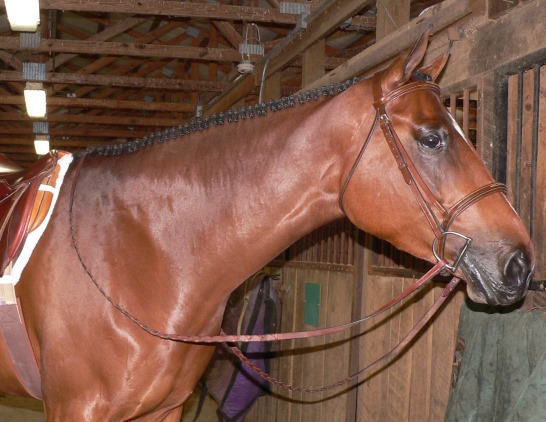 Corky had her teeth floated yesterday so she got the day off. Today (Friday) I hauled her over to my friend Willie's to get ready to be the demo rider in her training clinic the next day. I rode Corky in Willie's awesome huge indoor and she was great! No signs of that witchy mare I had a week ago. Tonight I started her on ReguMate and by golly she will stay on that for a while! I braided her, and once again did a bang-up awesome job. Two in a row...could I finally have gotten the hang of braiding well???